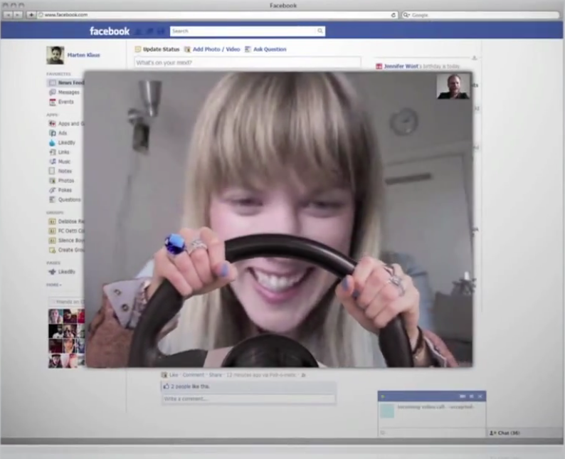 Even better, the product demo turns into a game. Moving hands and a steering wheel are layered over the caller’s image, but they’re only visible to the person they are calling.
