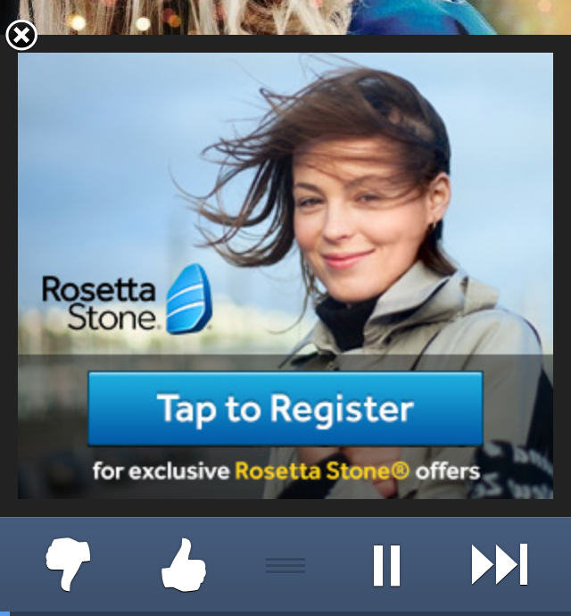 Here's a screenshot of a Pandora ad from my phone taken this morning. Click the image to enlarge it. Note how text like the "Tap to Register" baked into lossy pixel-based image formats starts to look pretty bad on a nice display.