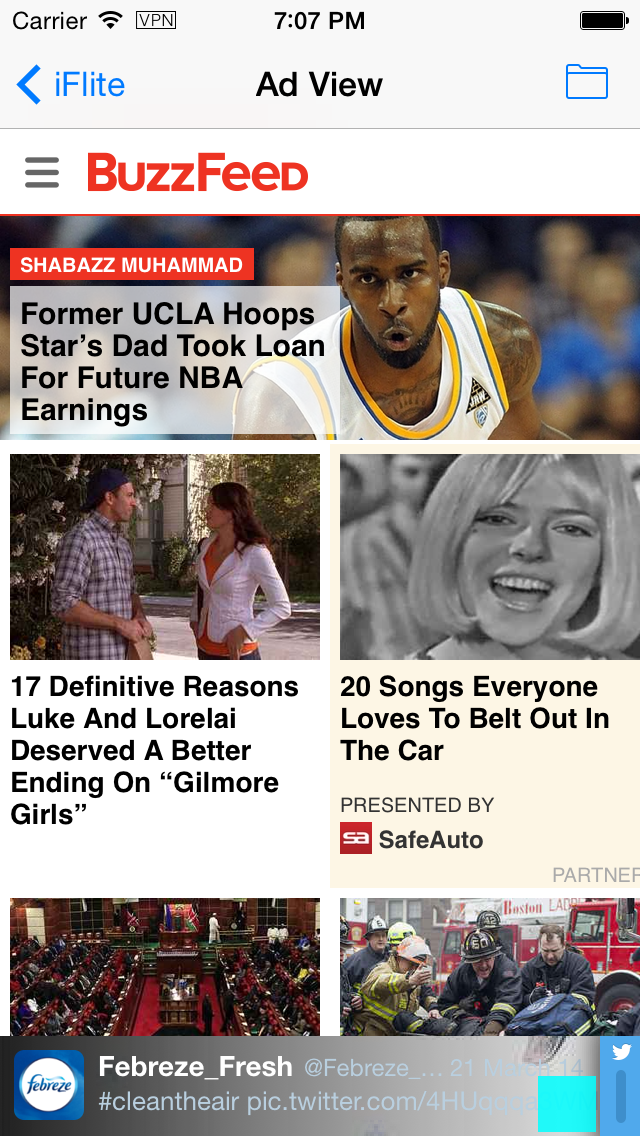 iFlite is a demo to show how easy it is to take any Flite ad and give it native interaction such as expansions in an iOS app using a custom UIWebView in iOS and a Flite Mixin to allow our ads to communicate javascript commands to iOS. It also serves as a self contained debugging tool by utilizing QR codes to bring in a Flite ad and record and display all interaction and metrics from the ad with out having advance knowledge of browsers or Xcode developer tools.