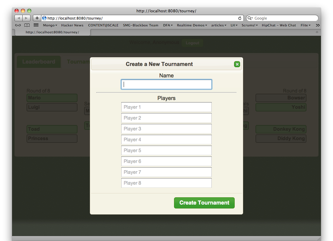 There are a number of pool enthusiasts at Flite and mini tournaments spring up from time to time. To track the results, they use a website called Nomad Pool which gets the job done but isn’t particularly well made. At the same time, we wanted to try out using a realtime app platform called Firebase. The app creates 8-player, single-elimination brackets and also has a leaderboard. The result was a very simple, single page of HTML with a little bit of client-side JS to power the whole thing.